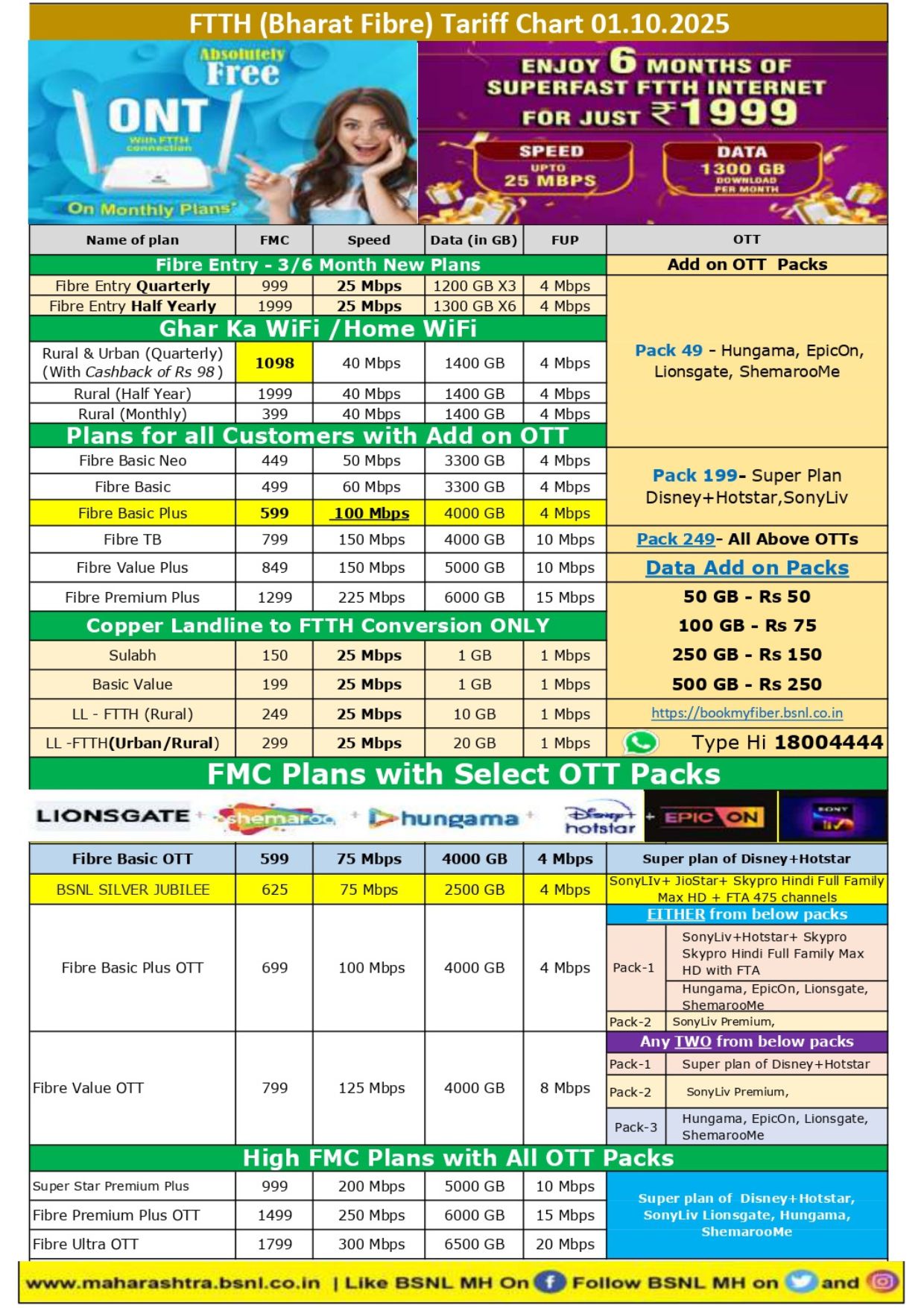 | Gold | 200 Mbps | Unlimited | ₹799 / month |